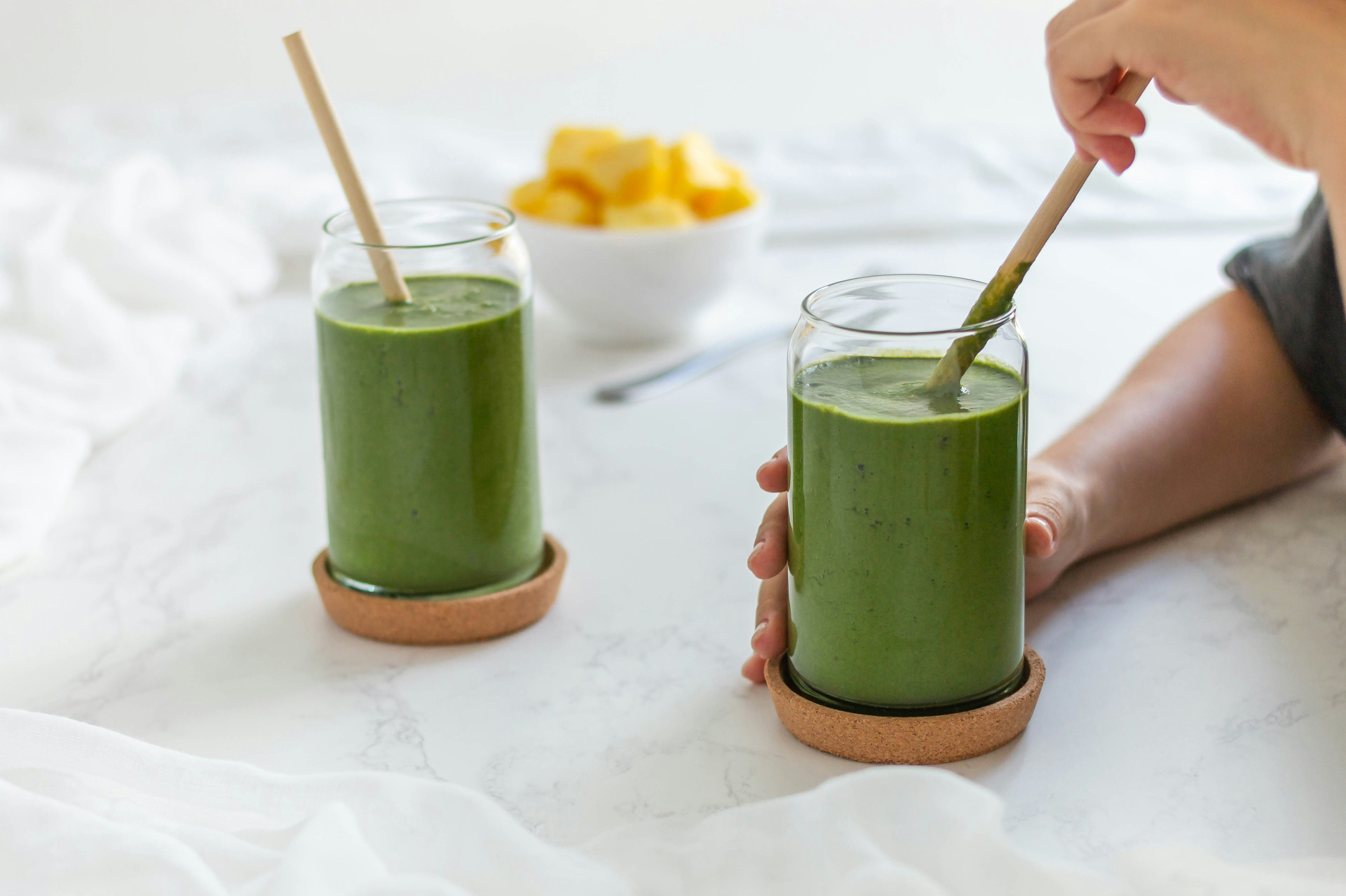 - Smoothiet voi rakentaa loputtomilla tavoilla – kokeile esimerkiksi pinaattia, banaania ja appelsiinimehua vihreään, nesteyttävään aamuun.